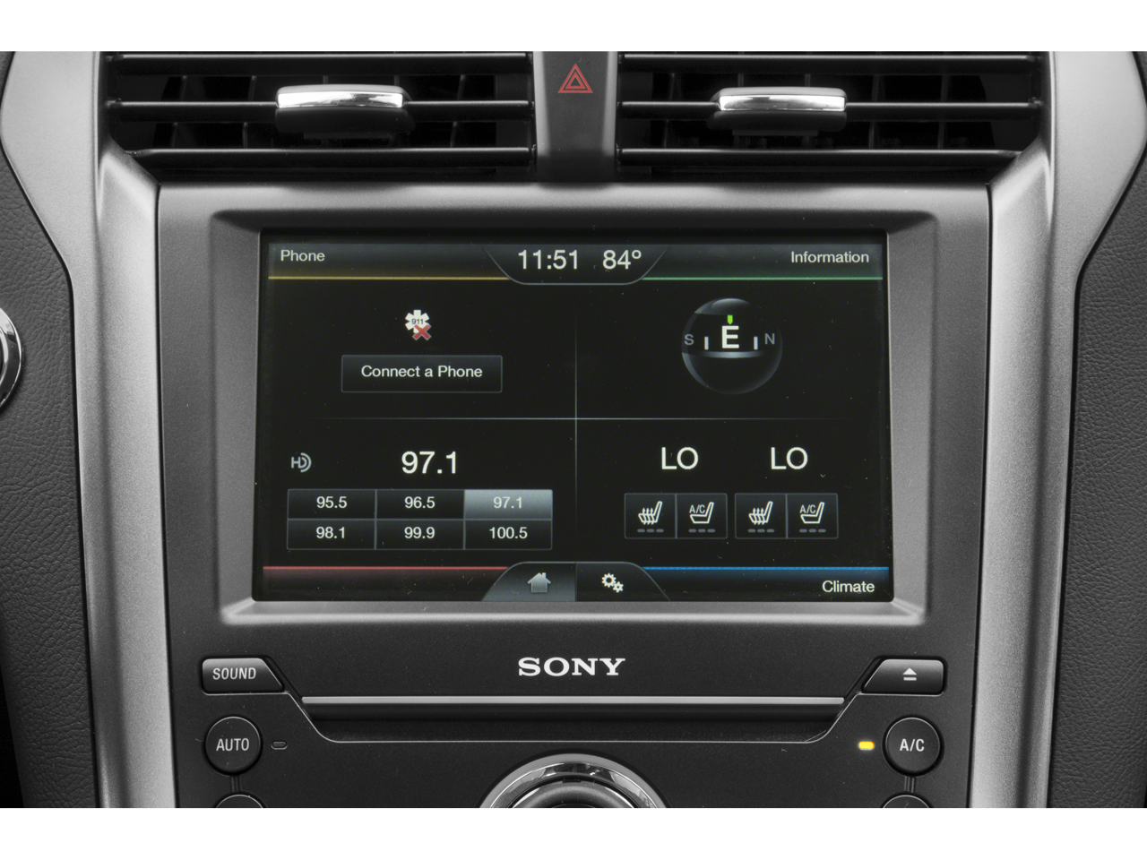 - Radio: AM/FM Stereo/MP3/Single-CD -inc: Sony premium audio w/12 speakers and HD Radio