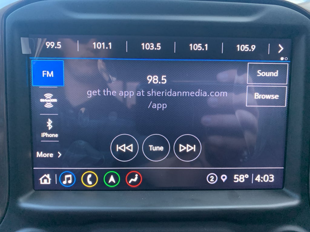 - Audio system, Chevrolet Infotainment 3 Premium system with connected Navigation, 8" diagonal HD color touchscreen, AM/FM stereo Bluetooth® audio streaming for 2 active devices, wireless Apple CarPlay and Android Auto capable, enhanced voice recognition, additional memory for in-vehicle apps, cloud connected personalization for select infotainment and vehicle settings. Subscription required for enhanced and connected services after trial period. (Includes (PZ8) Hitch Guidance with Hitch View.)