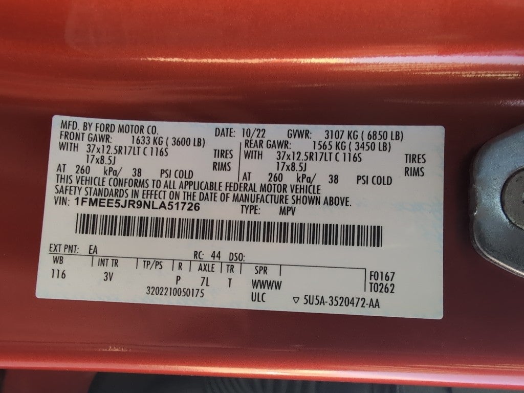 Equipment Group 374A Lux Package: 17" Black High Gloss-Painted Aluminum Wheels; Engine: 3.0L EcoBoost V6; 4.7 Axle Ratio; 10-Speed Automatic Transmission; 37 X 12.5R17 All-Terrain Tires; 6. 100 lbs GVWR; Marine Grade Vinyl Bucket Seats. Lux Package: 2 Smart Charging USB Ports in Dashboard; Evasive Steering Assist; Heated Steering Wheel; Adaptive Cruise Control; Universal Garage Door Opener; Wireless Charging Pad; B&O Sound System by Bang and Olufsen. Upgraded Raptor Graphic. Hot Pepper Red Metallic. **Equipment listed is based on original vehicle build and subject to change. Please confirm the accuracy of the included equipment by calling the dealer prior to purchase.**