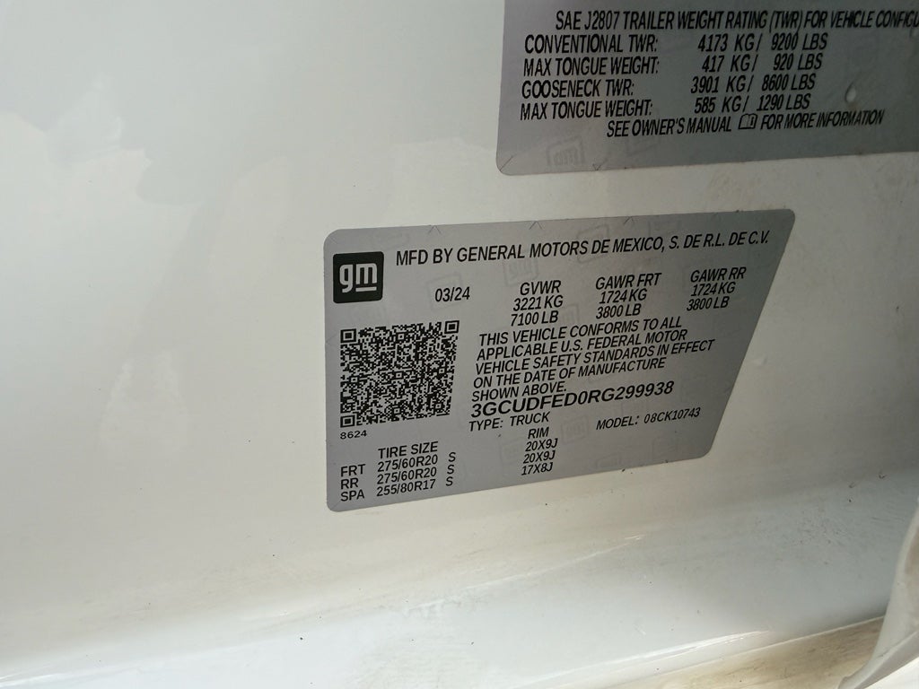 Preferred Equipment Group 2LT: HD Rear Vision Camera; LED Cargo Area Lighting; Rear 60/40 Folding Bench Seat (folds Up); Cloth Seat Trim; SiriusXM with 360L; Bluetooth® For Phone; Electrical Steering Column Lock; Trailering Package; Standard Tailgate; Front LED Fog Lamps; Suspension Package; Steering Wheel Audio Controls; Color-Keyed Carpeting Floor Covering; OnStar and Chevrolet Connected Services Capable; Power Front Windows with Passenger Express Down; Inside Rearview Mirror with Tilt; 2-Speed Transfer Case; Deep-Tinted Glass; 12.3" Multicolor Reconfigurable Digital Display; 6-Speaker Audio System; All-Weather Floor Liner; High Gloss Black Mirror Caps; Electronic Cruise Control; Power Rear Windows with Express Down; Chevy Safety Assist; Performance Red Recovery Hooks; Power Front Windows with Driver Express Up/down; EZ Lift Power Lock and Release Tailgate; Convenience Package; Auto-Locking Rear Differential; Heated Power-Adjustable Outside Mirrors. Off-Road Assist Steps. 20" X 9" High Gloss Black Painted Aluminum Wheels. Front Bucket Seats. 275/60R20SL AT BW Tires. **Equipment listed is based on original vehicle build and subject to change. Please confirm the accuracy of the included equipment by calling the dealer prior to purchase.**